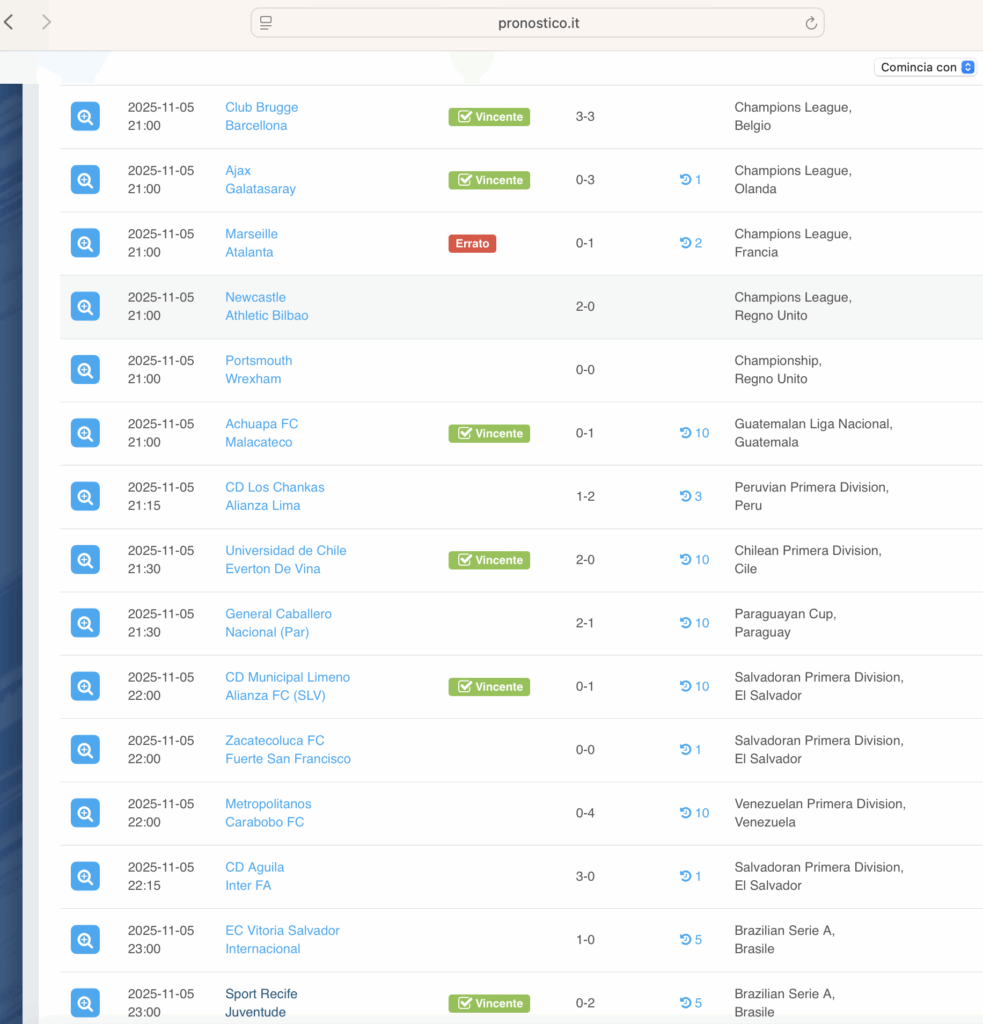 A proposito, per ribadire il concetto: tra i 6 pronostici errati ce ne era uno a quota 1.01. Naturalmente non rientrava nel metodo QSC e infatti è stato perdente. Giocare una quota a 1.01 è senza senso. Allora perchè Pronostico.it ha fornito quella quota? Perché non è un metodo QSC, non è un umano, è un’intelligenza artificiale da me sviluppata e possono esserci errori che la nostra mente non farebbe mai.