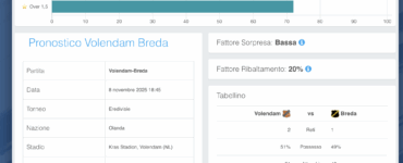 Ciao Francesco, in linea di massima poteva anche starci anche se non mi piacciono le due vittorie degli ospiti che rallentano 1 e Over. Poi, qualora non sia una partita di coppa, meglio avere almeno 3 precedenti storici. Pronostico.it PREMIUM ha dato un 1 vincente. Comunque Over 2,5 è stato vincente, la prima rete è arrivata al 22′ portando l’Over 2,5 da 2.26 a 1.61.