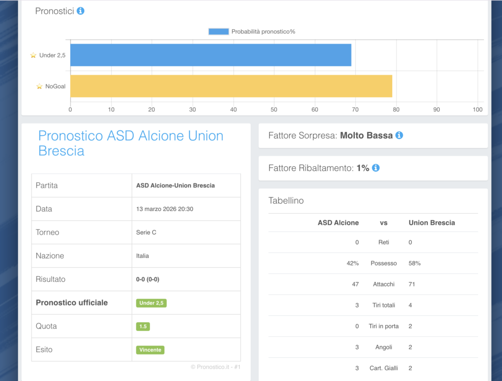 Oggi analizziamo la sfida lombarda: ADS Alcione – Unione Brescia dove Pronostico.it ha fornito due pronostici vincenti.