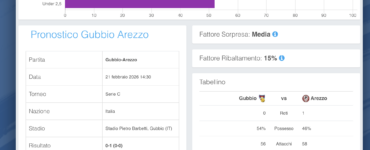 - Pronostico Secondario (Giallo): 1X con 3 stelle e 86% di probabilità