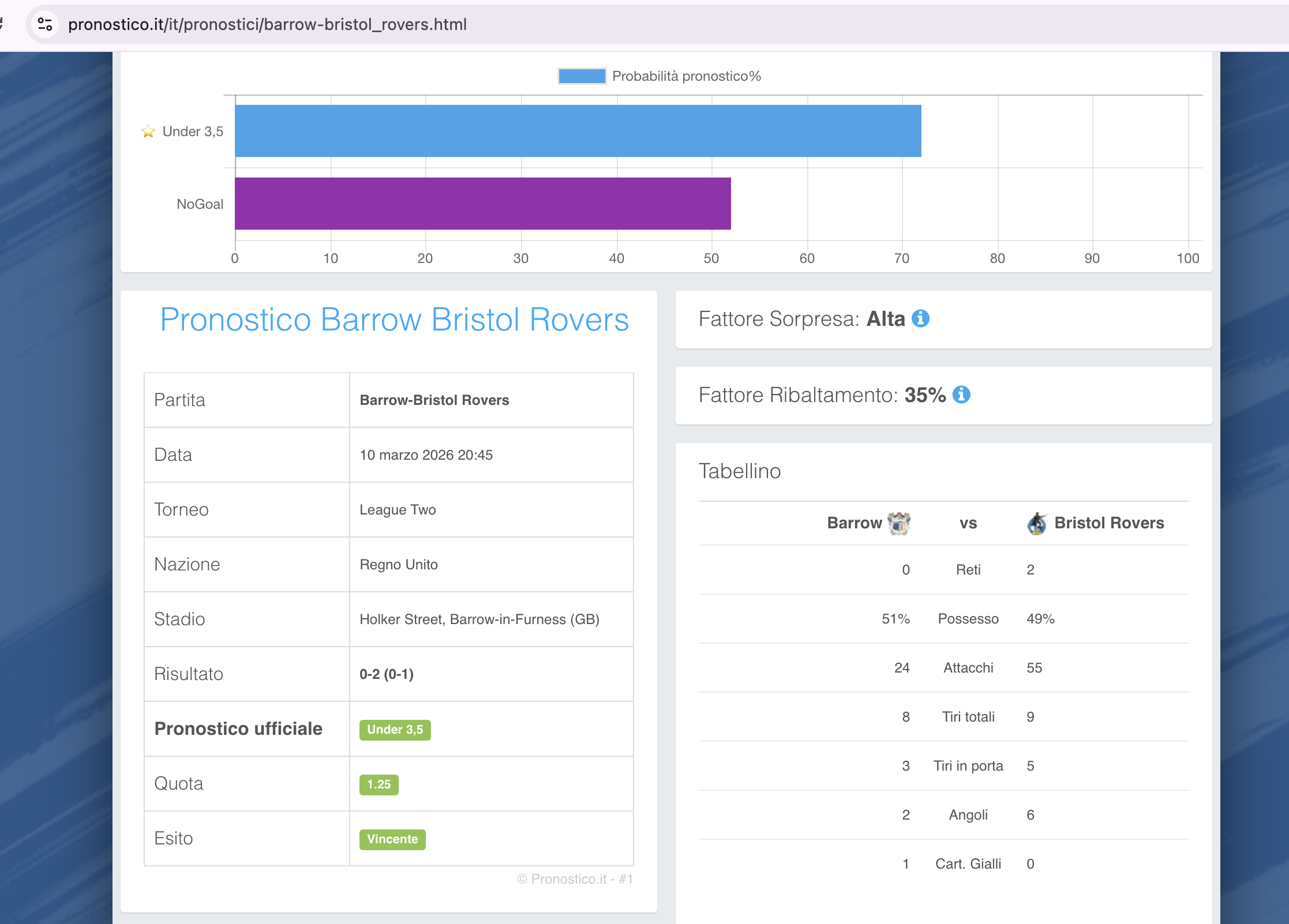 Da notare che Pronostico.it PREMIUM ha fornito due pronostici vincenti: