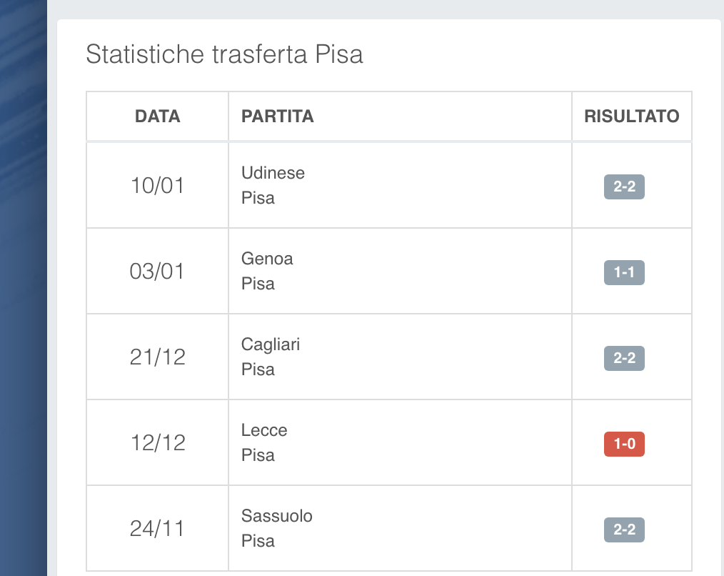 Ma c’è di più: Il Pisa aveva ben 4 pareggi e una sola sconfitta con una sola rete di scarto, guardate qui: