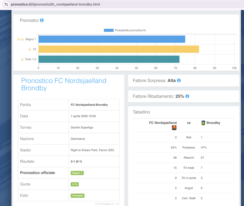 - Pronostico Principale: 1 a quota 2.15