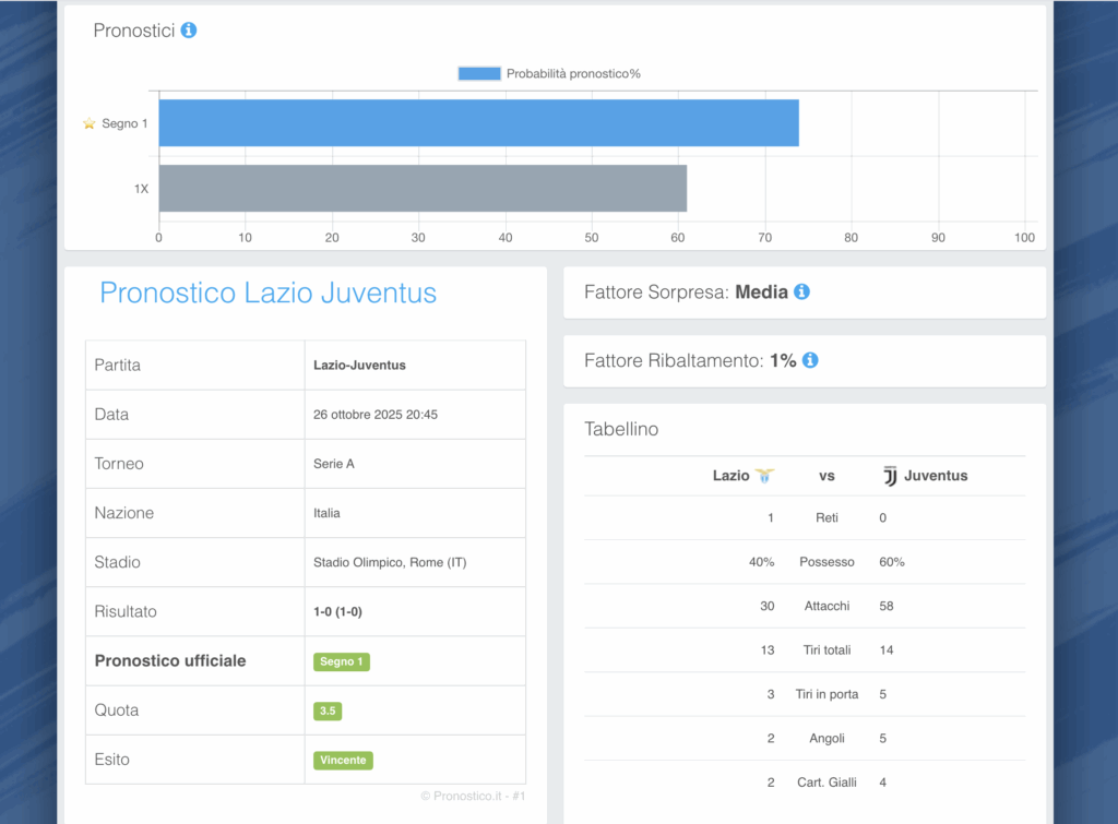 Pronostico.it PREMIUM ha fornito per Lazio-Juventus: