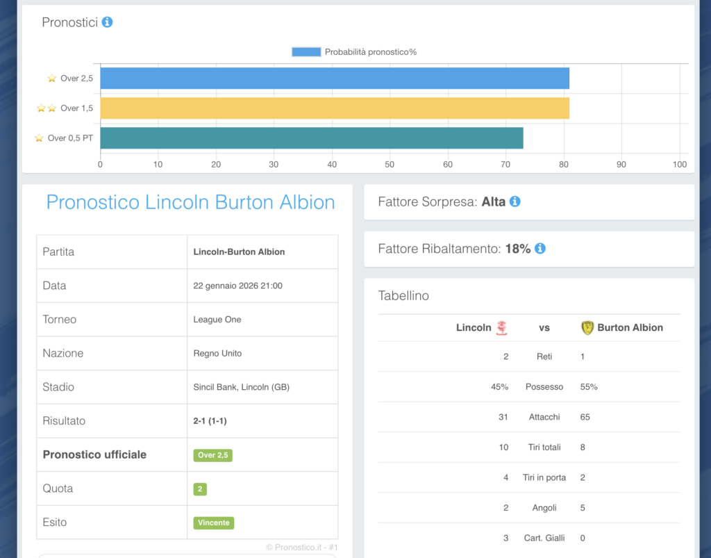 Ora analizziamo però l’incontro Lincoln – Burton Albion.