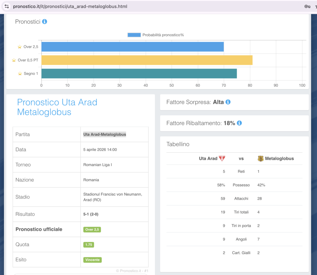 Buona Pasquetta a tutto il Popolo QSC! Anche ieri tantissimi pronostici vincenti su Pronostico.it. Oggi vogliamo in Romania per analizzare l’incontro Uta Arad – Metaloglobus.