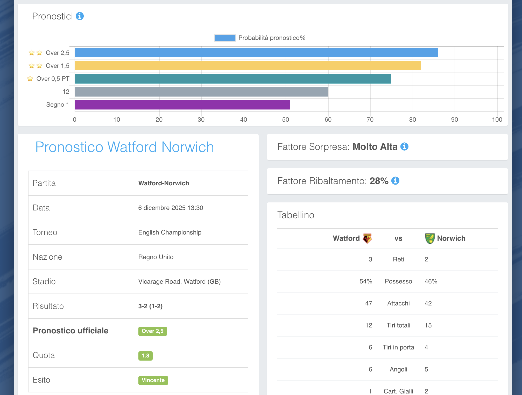 Anche ieri Pronostico.it ha fornito tantissimi pronostici vincenti, ben 133! Andiamo a vedere uno di questi Watford-Norwich.