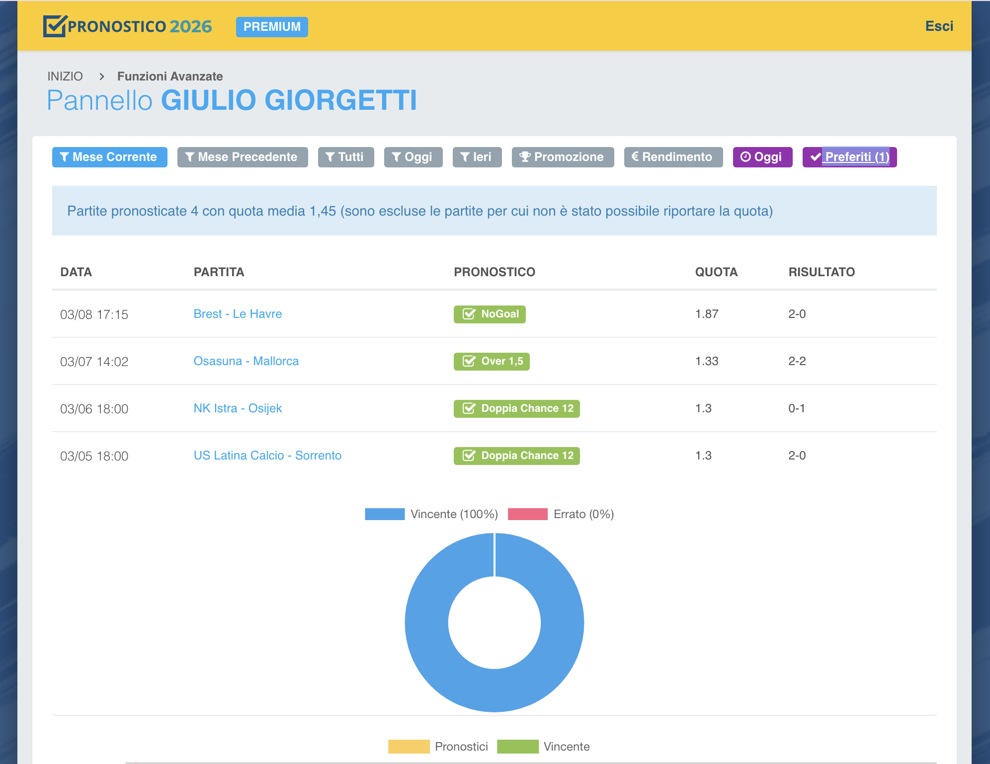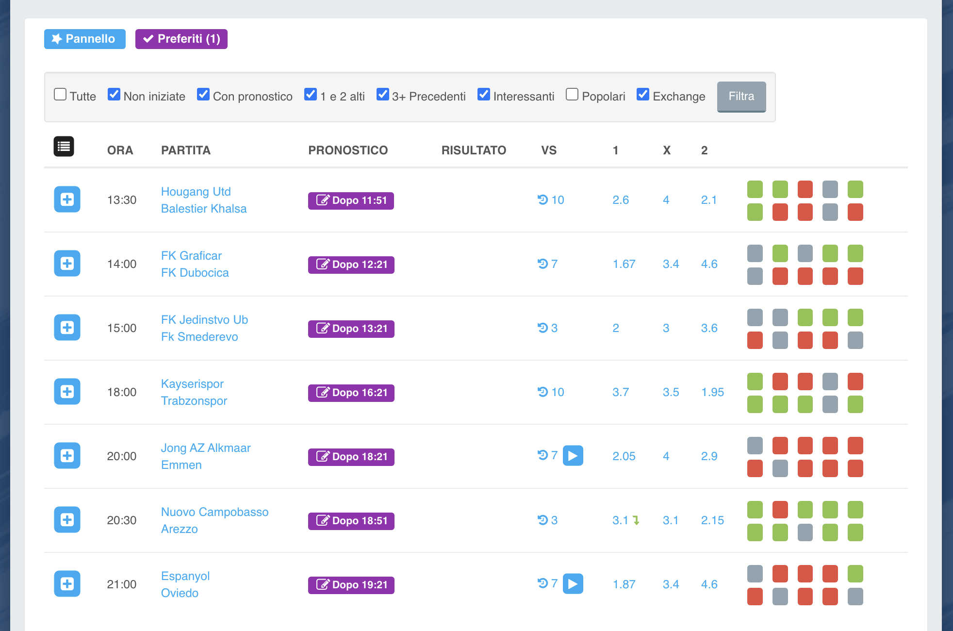 Per le giornate con tante partite o se comunque preferite avere sempre anche un confronto con il pronostico ufficiale di Pronostico.it selezionate anche il filtro “con pronostico”.