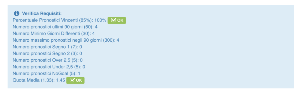 Su questo punto voglio fare alcune precisazioni. La promozione è bella, aiuta ad esercitarsi a selezionare partite buone, ma non bisogna fissarsi. Dividiamo la cosa: se vi state divertendo come molti fanno con i soli pronostici per ottenere la maglia di Pronostico.it “dorata” va bene allora focalizzarsi solo su quel tipo di partite, altrimenti si può benissimo selezionare una partita che magari non rientra nella promozione, ma che è comunque valida ai fini del Metodo QSC.