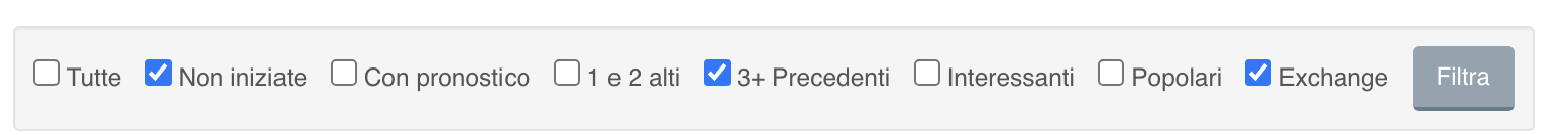 Il filtro “Popolari” non lo utilizzo praticamente quasi mai, è pensato più che altro per l’utente medio che non segue il Metodo QSC oppure per chi utilizza l’Exchange e vuole conoscere le partite con più liquidità. Ma come spiego sempre, chi è esperto come me, può fare bene con l’exchange sia con bassa che alta liquidità.