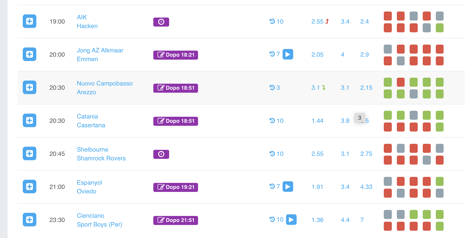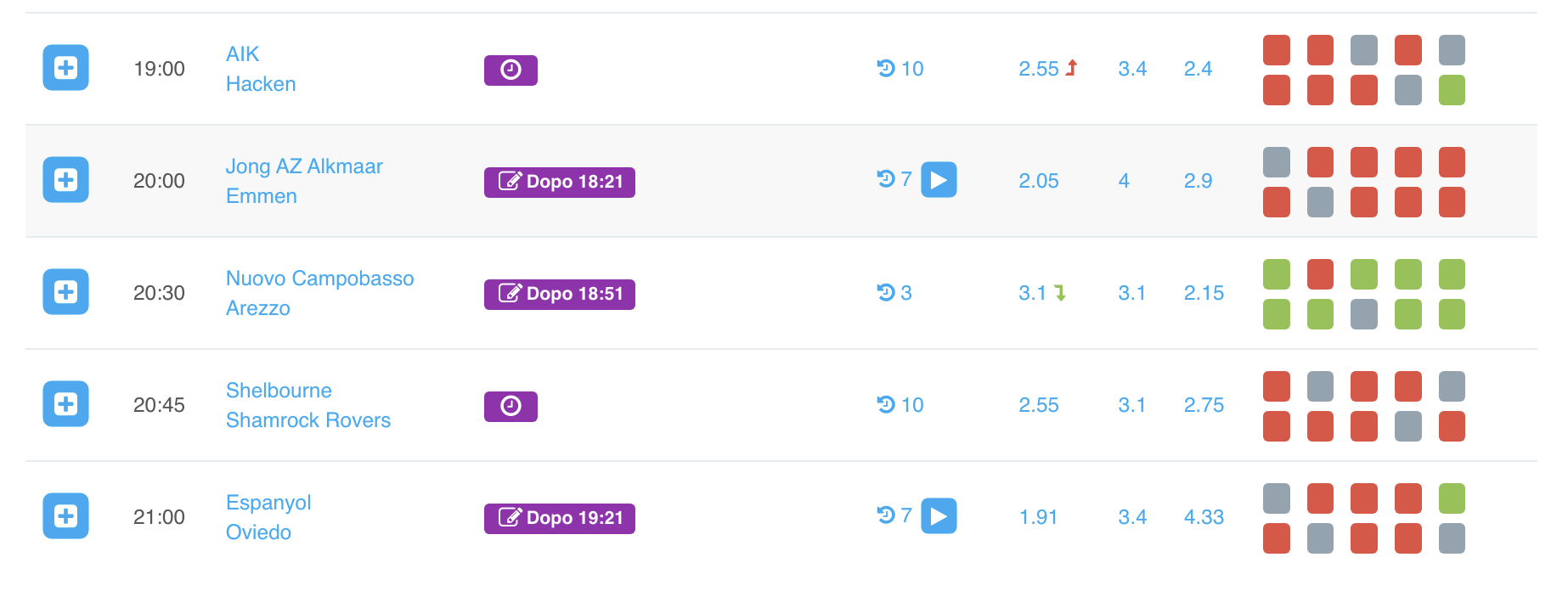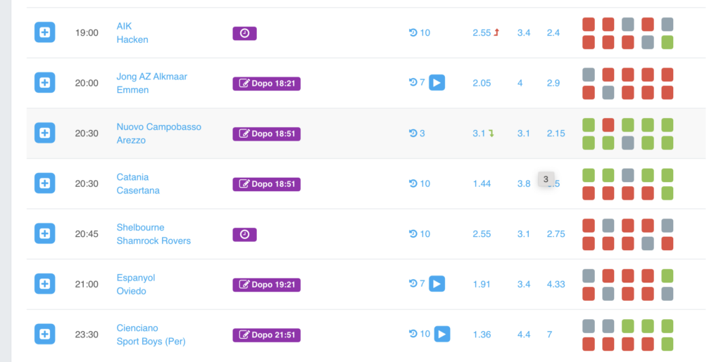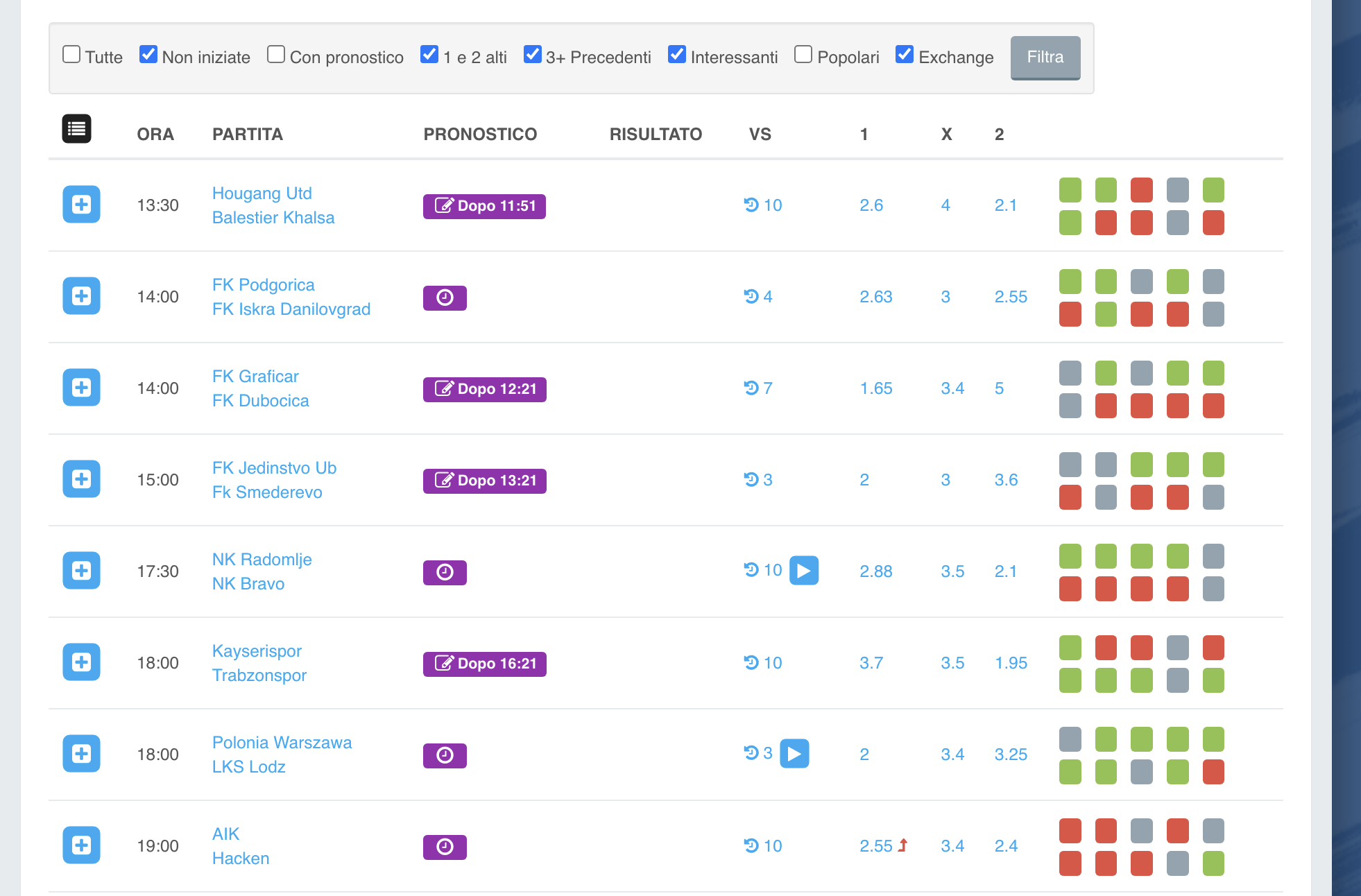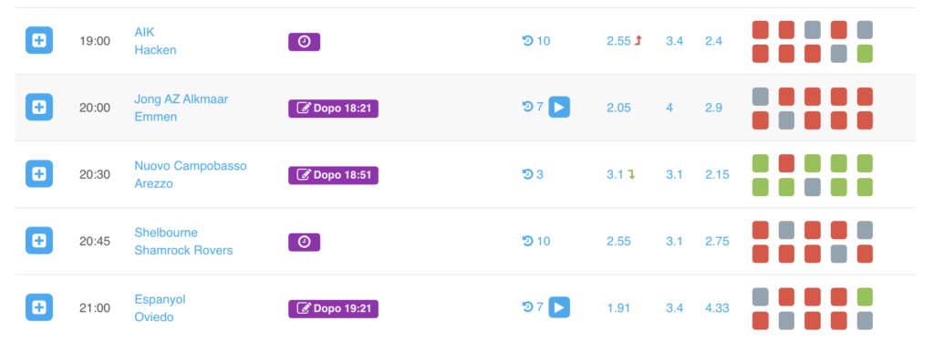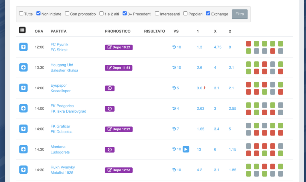 Posso poi filtrare in questa maniera con “Interessanti”. In questo caso, essendo un lunedì, vedete essendo 8 partite si va dalle 13:30 alle 19:00. Quindi posso anche analizzare una partita delle 19:00, perché in pochi secondi lo faccio. Se invece avessi dovuto analizzare tutti gli incontri senza filtri sarebbero stati decine (oggi ci sono oltre 80 partite).