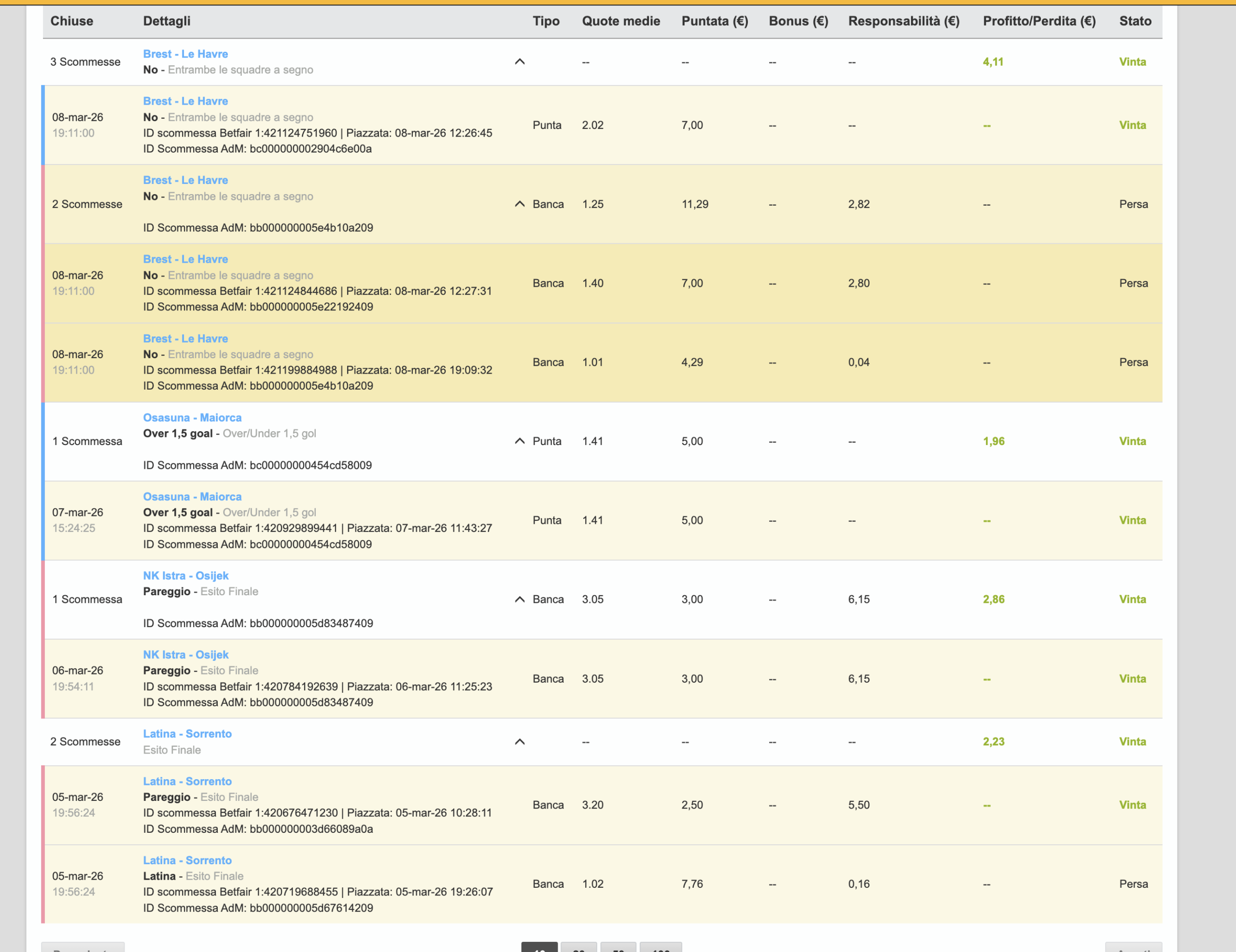 Vi allego il dettaglio scommesse sia compattato che aperto: