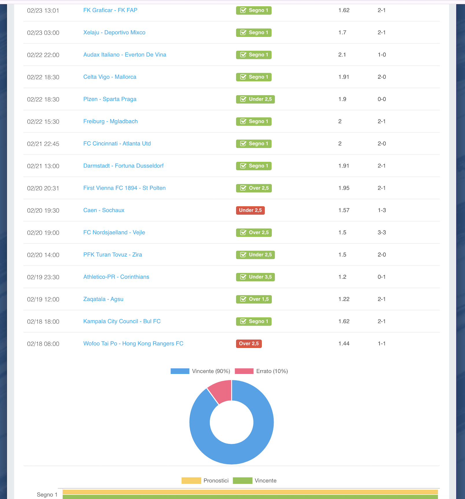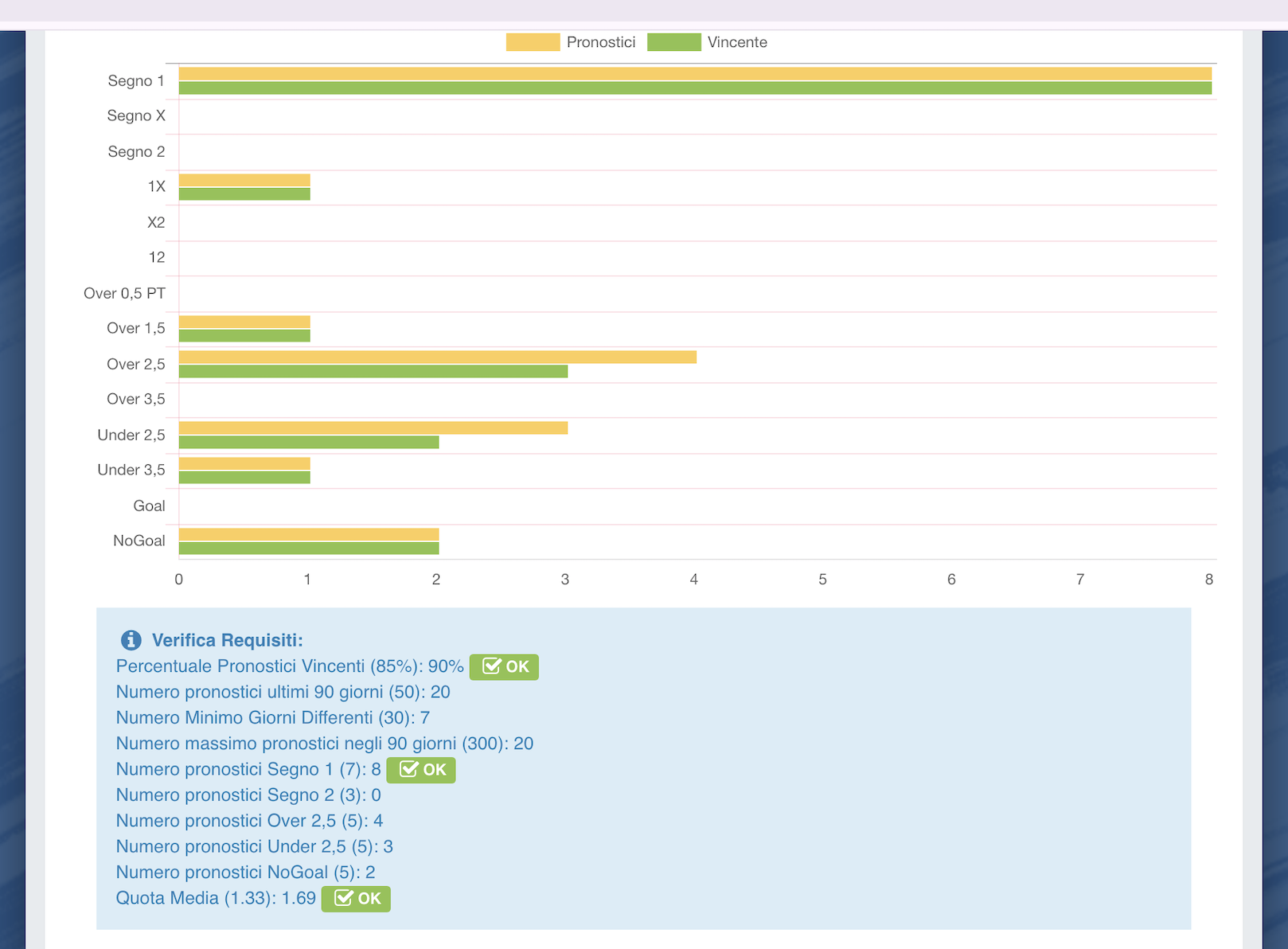 Di seguito trovate sia le schermate del Pannello con tutti i pronostici, sia il dettaglio della Promozione.