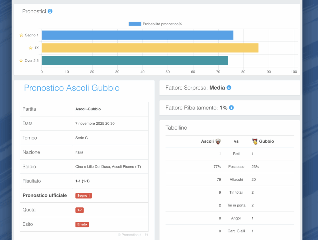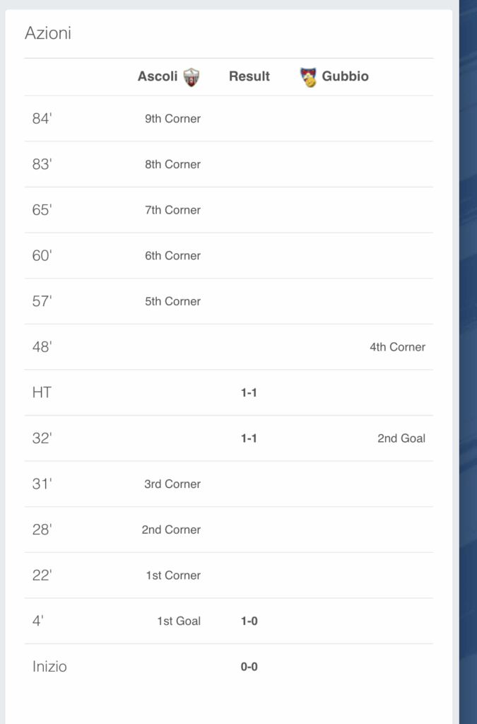 Prendo una partita di cui abbiamo parlato nei commenti di ieri con Sonia: Ascoli – Gubbio.