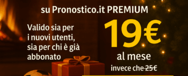 Mi segnalano dall’amministrazione tra l’altro che da oggi e per pochi giorni è appena stata attivata una promozione per avere Pronostico.it PREMIUM mensile a 19 euro invece che 25. La promozione è valida anche per chi è già abbonato! Quindi sia chi si abbona ora, sia chi ha già un abbonamento mensile. Cliccate qui per info sul Natale Anticipato