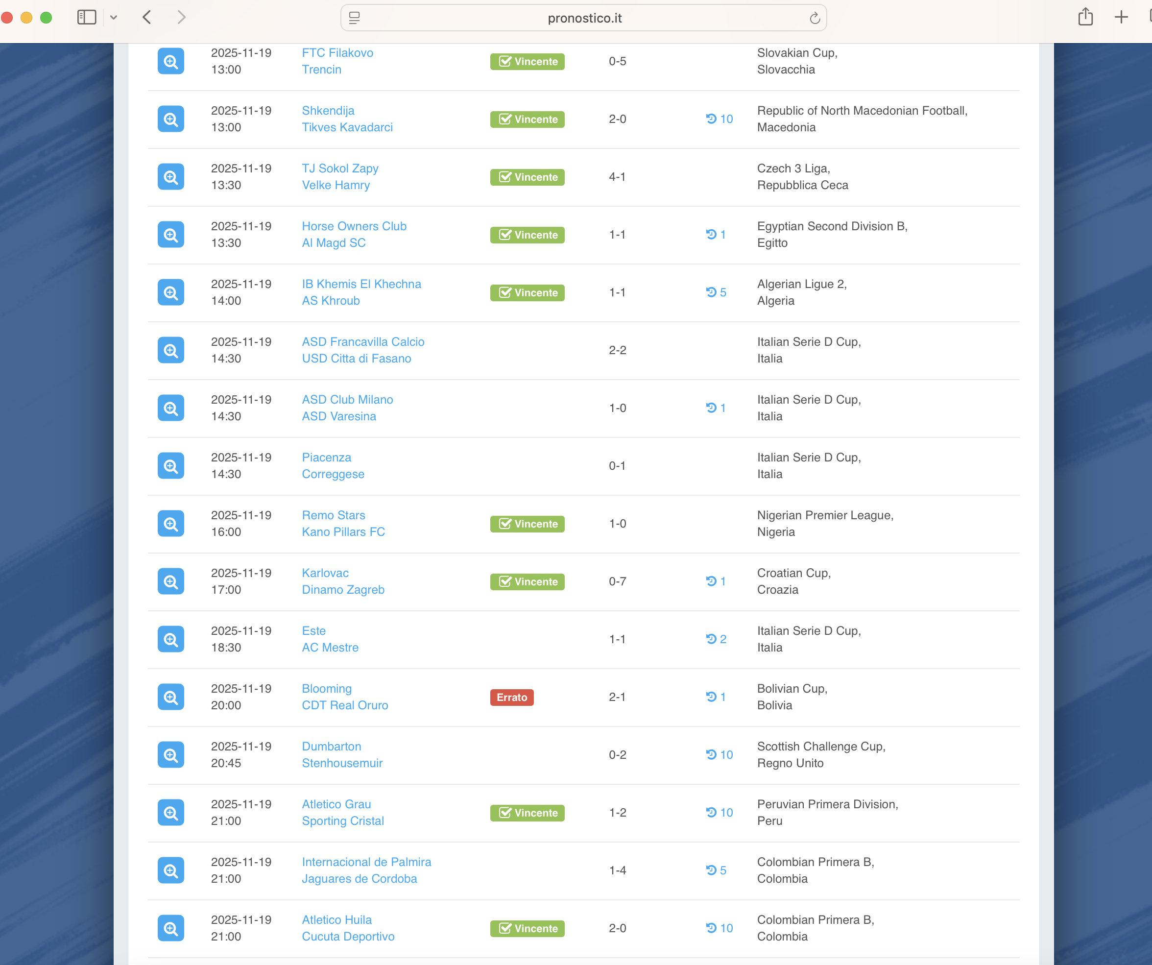 Buongiorno a tutto il bellissimo Popolo QSC! Avrete notato che sono state aumentate il numero di partite disponibili su Pronostico.it. Sono disponibili nuovi campionati da tutte le nazioni del mondo. Ieri ad esempio erano disponibili, tra le altre, partite in Uzbekistan, Albania, Indonesia, Cambogia, Nigeria, Uganda e per celebrare la novità è arrivata anche una nuova vincita potenziale matematica su Pronostico.it PREMIUM, l’area del sito con le funzionalità avanzate tra cui gli ormai famosi pronostici calcio.
