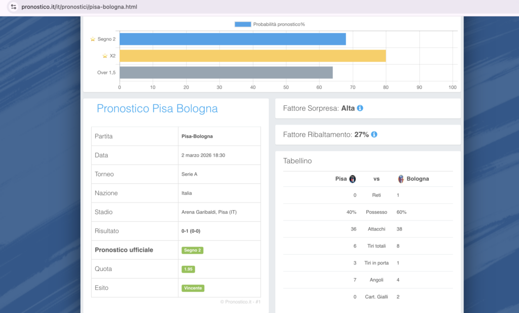 Buongiorno a tutti! Andiamo ad analizzare il pronostico di Pisa-Bologna.