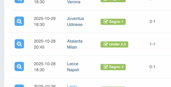 Qui trovi i pronostici calcio della Serie A. La nostra redazione fornisce analisi approfondite delle partite, supportate da statistiche aggiornate e quote dei principali operatori di scommesse. Con i nostri numeri e previsioni, potrai ottenere una visione completa per scommettere in modo informato sulle sfide della massima serie del calcio italiano.